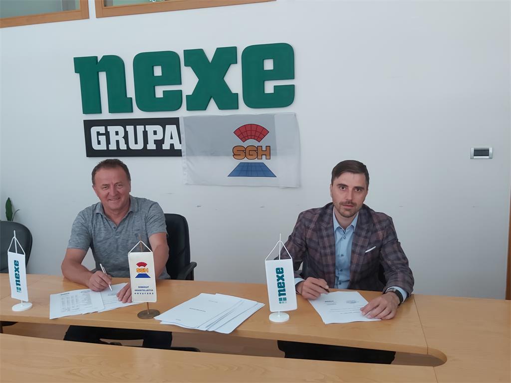 Našice, 30.06.2020. - U tvornici cementa NEXE d.d. – najvećoj članici regionalnog proizvođača građevinskog materijala Nexe Grupa – danas je sklopljen novi Kolektivni ugovor kojim su povećane plaće i povećana materijalna prava radnika. Ugovor su ispred Sindikata graditeljstva Hrvatske – Sindikalne podružnice NEXE d.d. potpisali Marijan Baričević, sindikalni povjerenik, a ispred Uprave NEXE d.d. Stjepan Ergović, predsjednik Uprave.